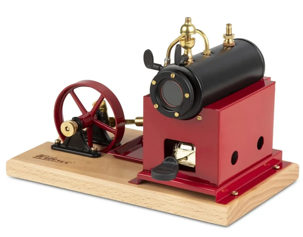 Wilesco präsentiert mit der Dampfmaschine D7 ein weiteres Modell mit Holzplatte